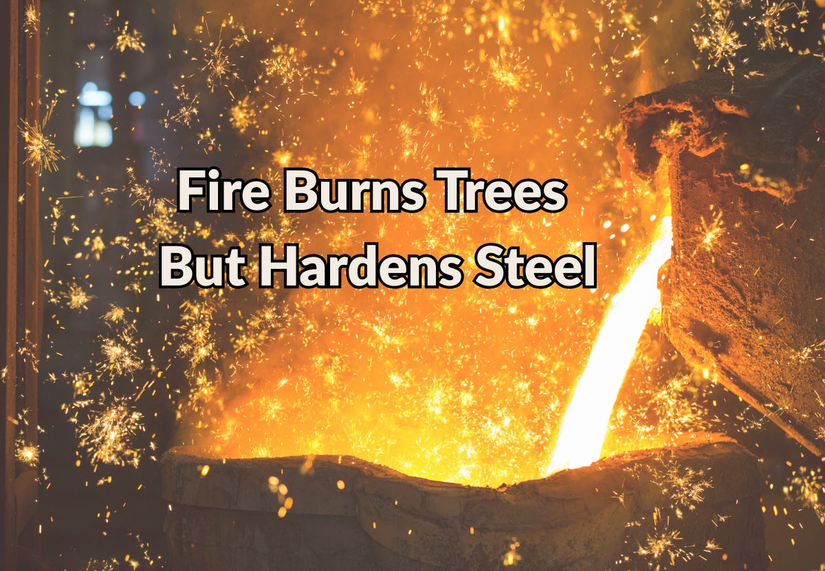 Forging: what’s inside? The parent applies heat, burning away the gangue. Then comes the pressure. Ore doesn’t know what it is capable of. It is the smith’s knowledge that brings the steel out of the dirt.